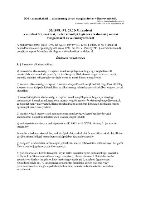 33 1998 Vi 24 Nm Rendelet A Munkakaƒa Ri Szakmai Illetve