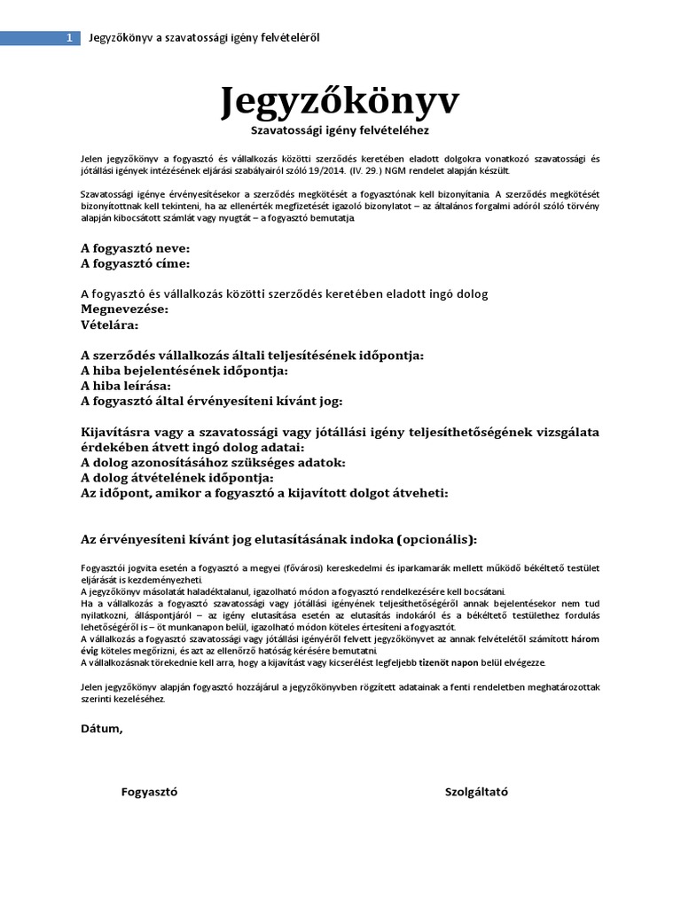 Https Www Csodasoveny Hu Jegyzokenyv Szavatossagi Igenyhez Pdf
