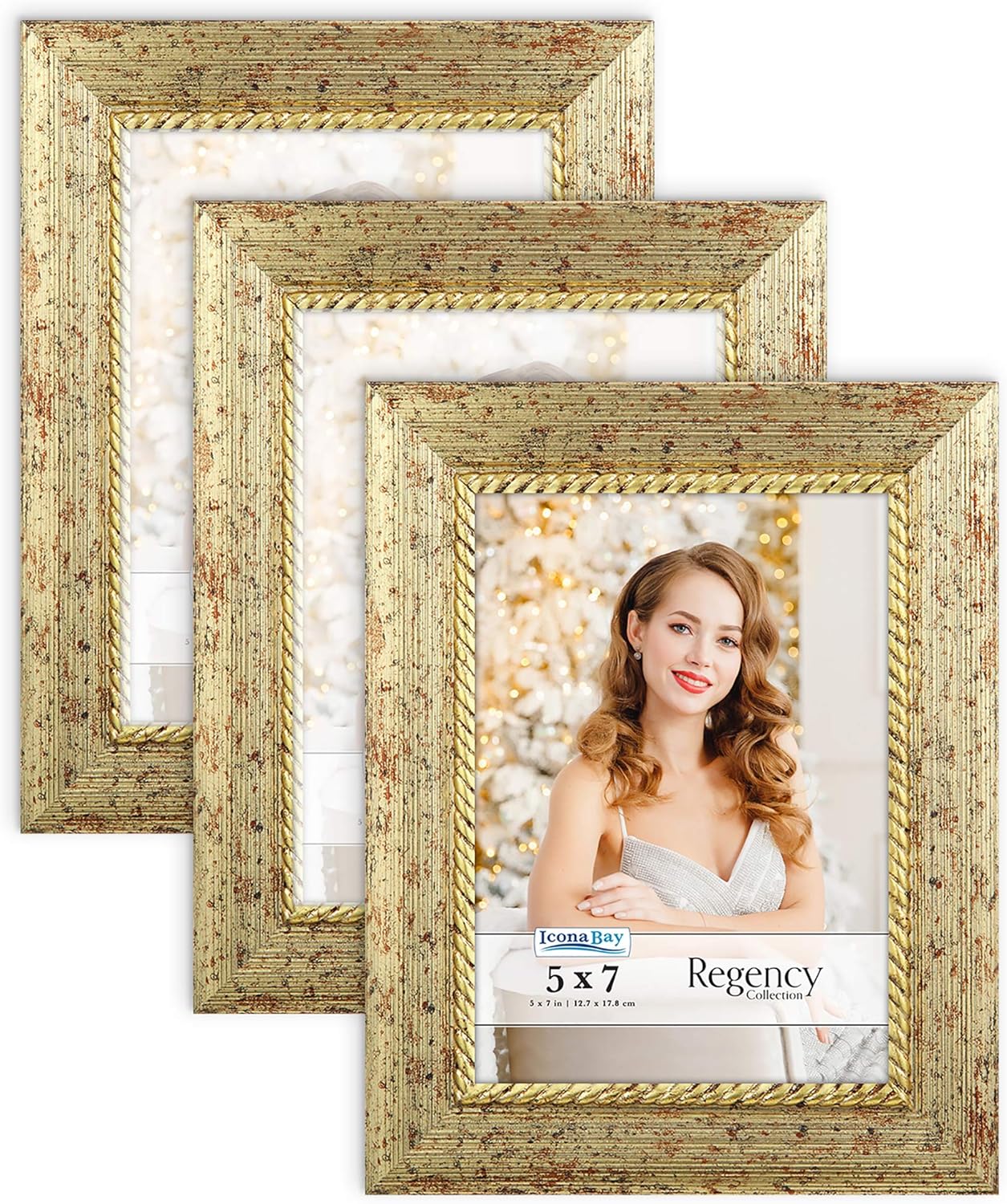 Amazon Com Icona Bay 5x7 13x18 Cm Picture Frames Gold 3 Pack Baroque Style Photo Frames 5 X 7 Wall Mount Or Table Top Regency Collection