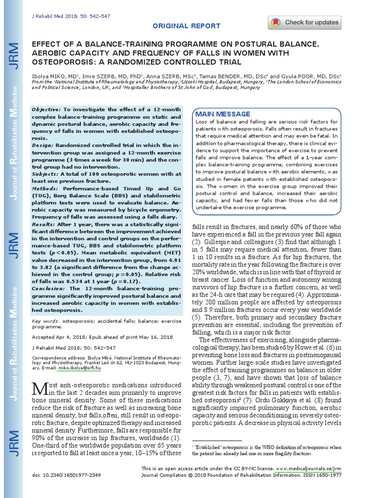 Journal Of Rehabilitation Medicine Effect Of A Balance Training Programme On Postural Balance Aerobic Capacity And Frequency Of Falls In Women With Osteoporosis A Randomized Controlled Trial Html