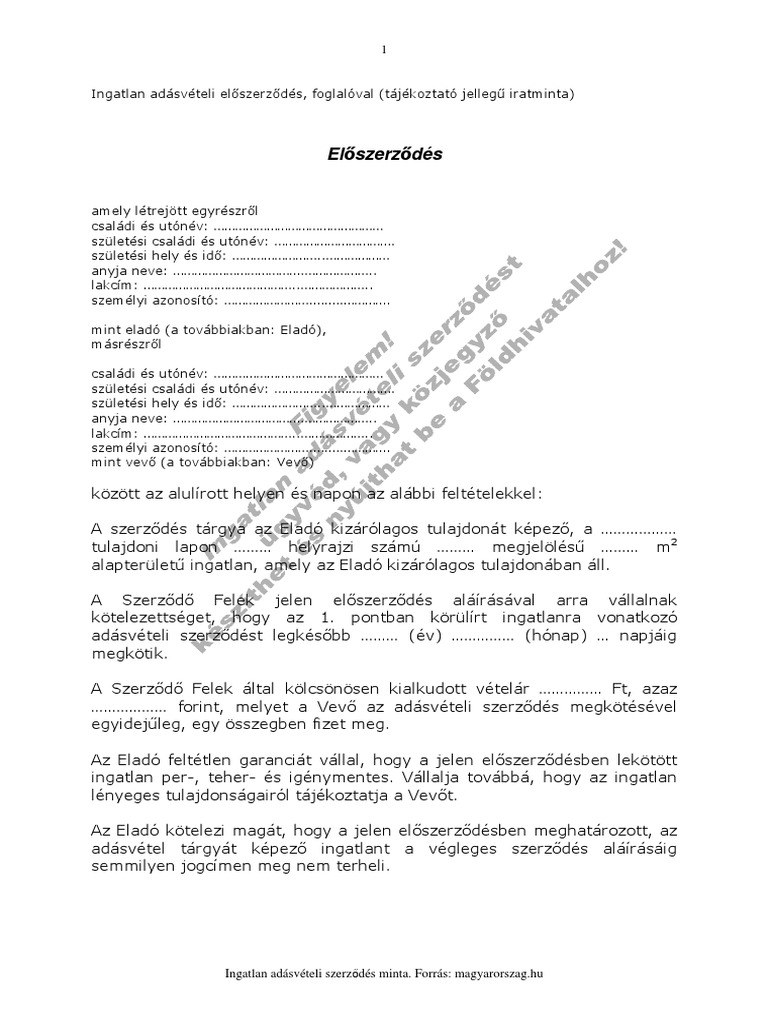 Ingatlan Adasveteli Eloszerzodes Pdf Free Download