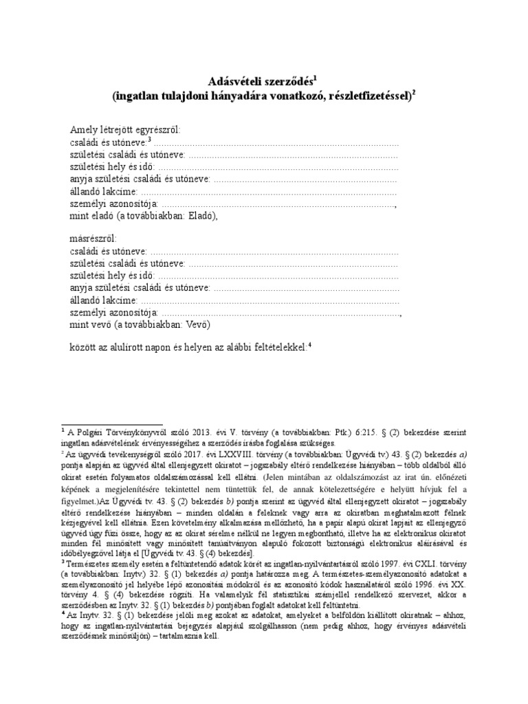 Ingatlan Adásvételi Szerződés Részletfizetéssel Minta