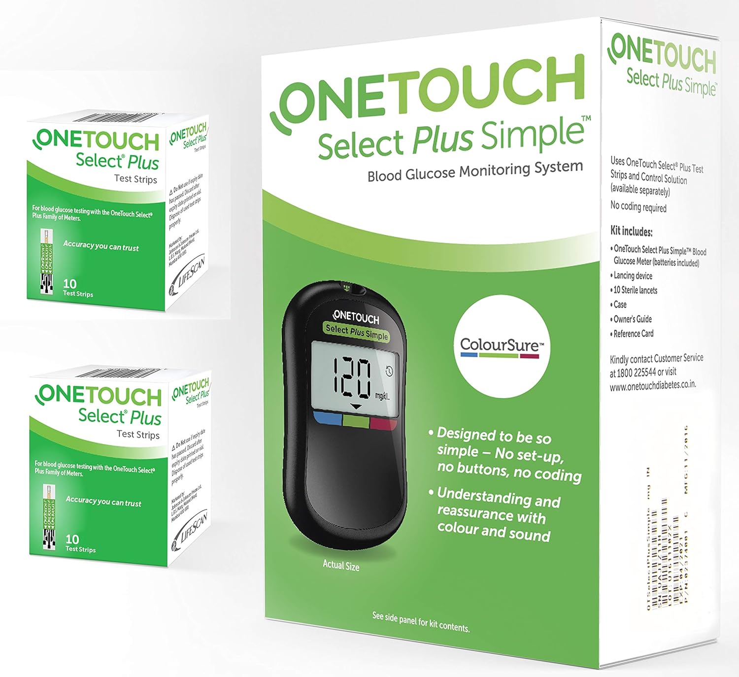Onetouch Select Plus Simple Glucometer Free 10 Strips Medineeds