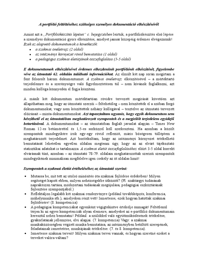 Segedanyagok A Portfoliohoz Pedagogus Portfolio Lepesrol Lepesre