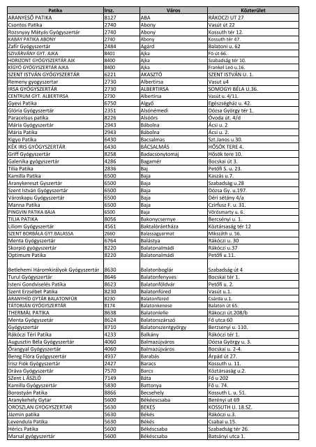 Irsz Varos Kozterulet Aranyeso Patika 8127 Aba Beres