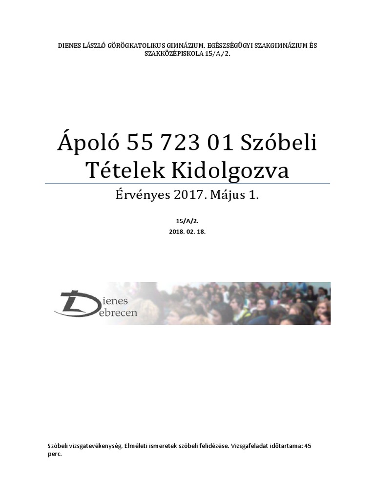 Szociális Gondozó és ápoló Kidolgozott Tételek 2017
