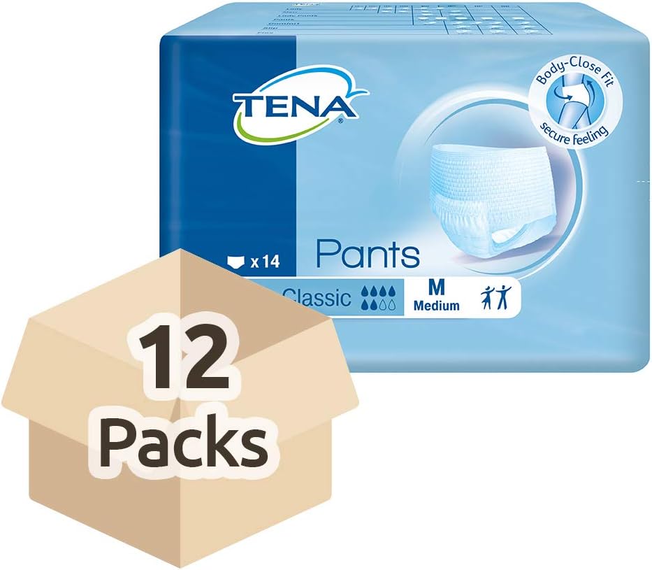 Tena pants plus medium amazon. Tena pants plus classic medium 80cm 110cm 4 paquets de 14 boîte économiseur 4 4 sur 5 étoiles 29. Amazon s choice for tena pants medium tena medium pants maxi pack of 10. Unique dual absorption zone for optimum dryness and protection. With a range of innovative features they offer triple protection from leaks odour and moisture.